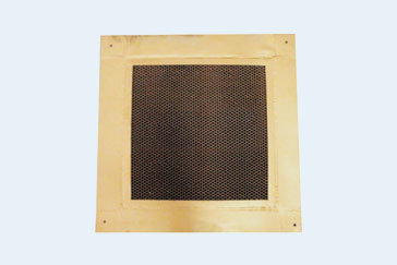 用于各類屏蔽機(jī)房、暗室的通風(fēng),它由小的波導(dǎo)組成波導(dǎo)束,采用成熟的沖壓成型工藝,經(jīng)多組裝配后釬焊,質(zhì)量可靠其插入衰減與機(jī)房屏蔽效能相應(yīng),常規(guī)規(guī)格為300×300(mm),孔徑有∮3、∮5,厚度有4mm或5mm,也可根據(jù)用戶要求定制。