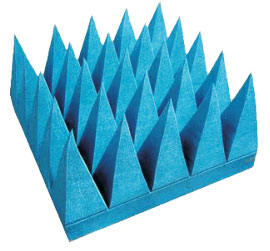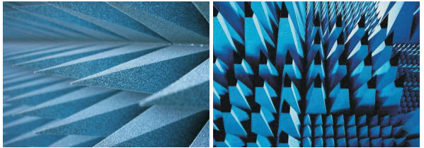 吸波材料分為泡沫塑料、橡膠、樹(shù)脂等,產(chǎn)品形狀可為角錐形、圓錐形、劈尖形等,廣泛應(yīng)用于科研、航空電子等領(lǐng)域,其大小、高度可根據(jù)場(chǎng)地定制。
